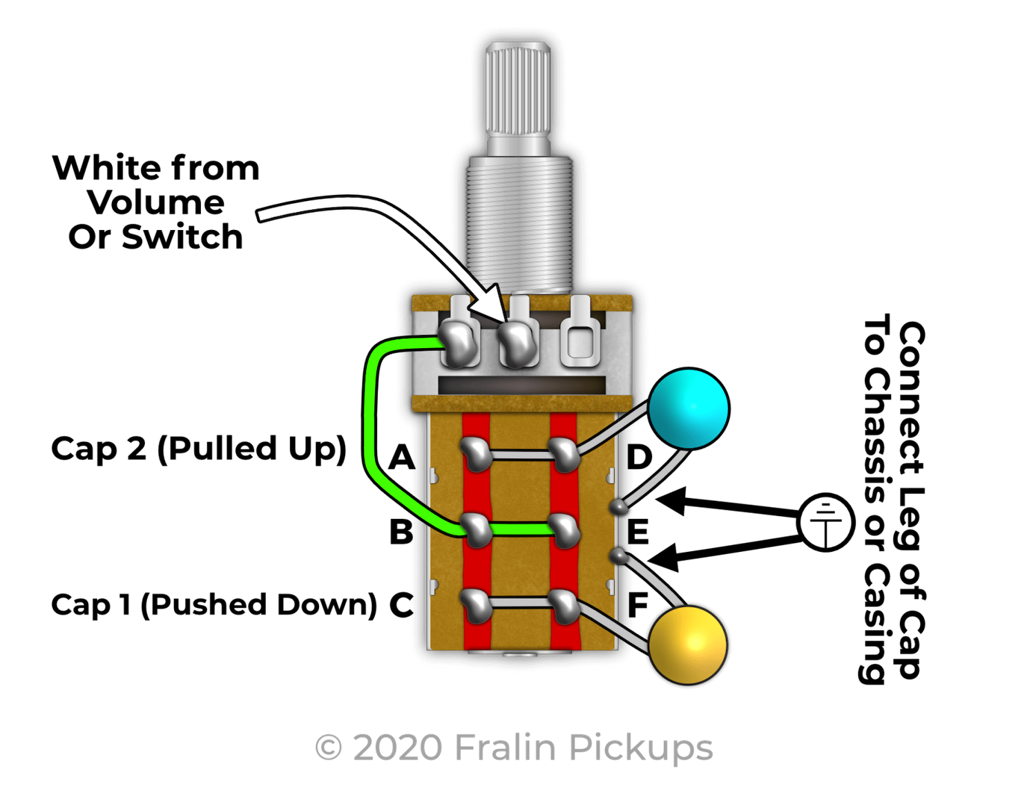 Last choice is a dual tone pot - but I think that picture is clear enough even for me (I assume a ground wire also goes from the casing to the back of the volume pot?).