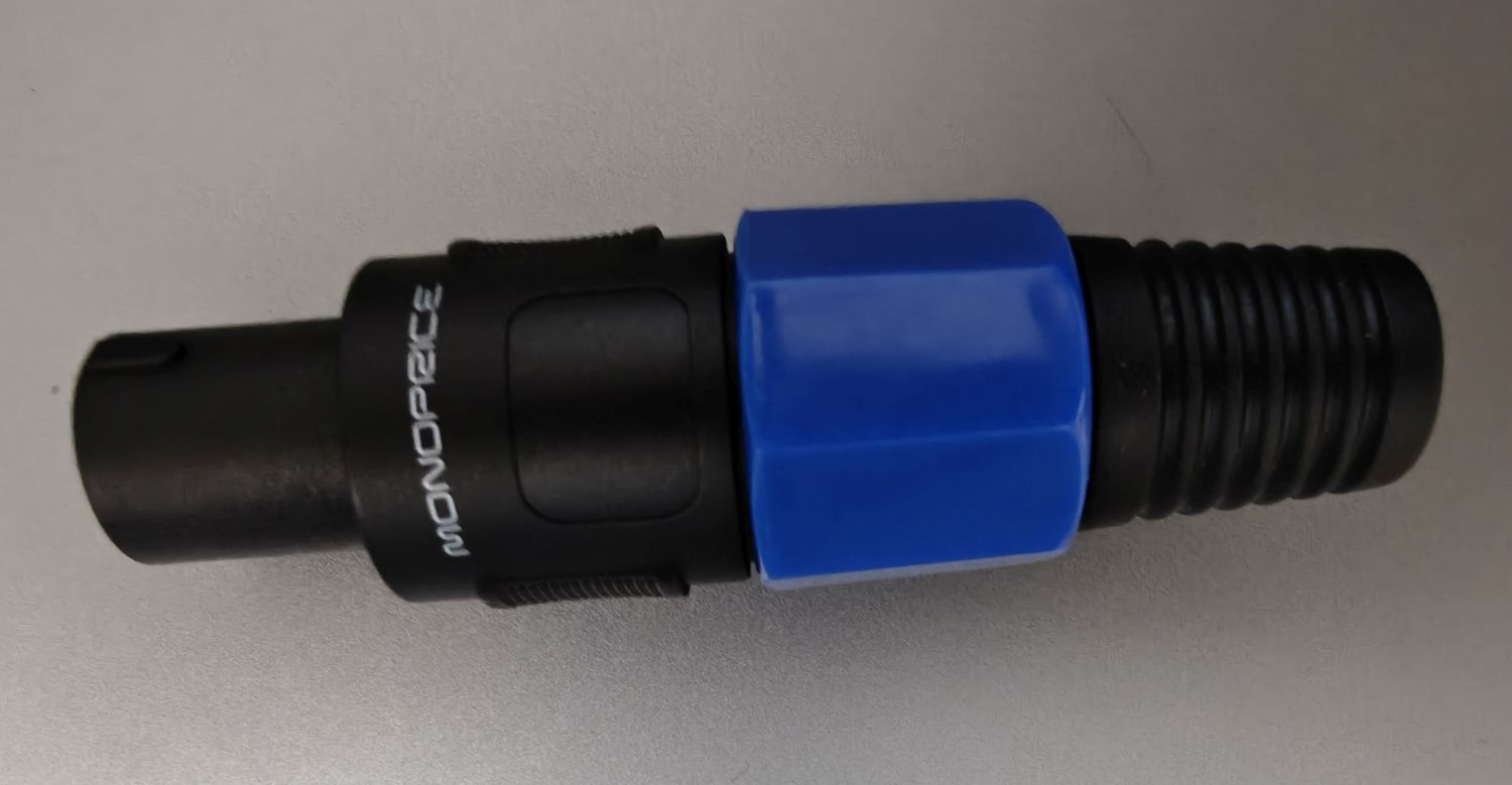 …But…I noticed that Monoprice made Speakon connectors. I have had great luck with their products. Very high quality phone and computer cables. I have a tuner pedal…and even an amp from them. All work great, and were also a great value. However, the winning streak ENDS with Speakon connectors. I ordered 10 2-way connectors; I have tested 6 of them. Two click nicely into place. Two will click into place, but only with a bit of jiggling. Two do not click into place, and don’t work. Yikes!