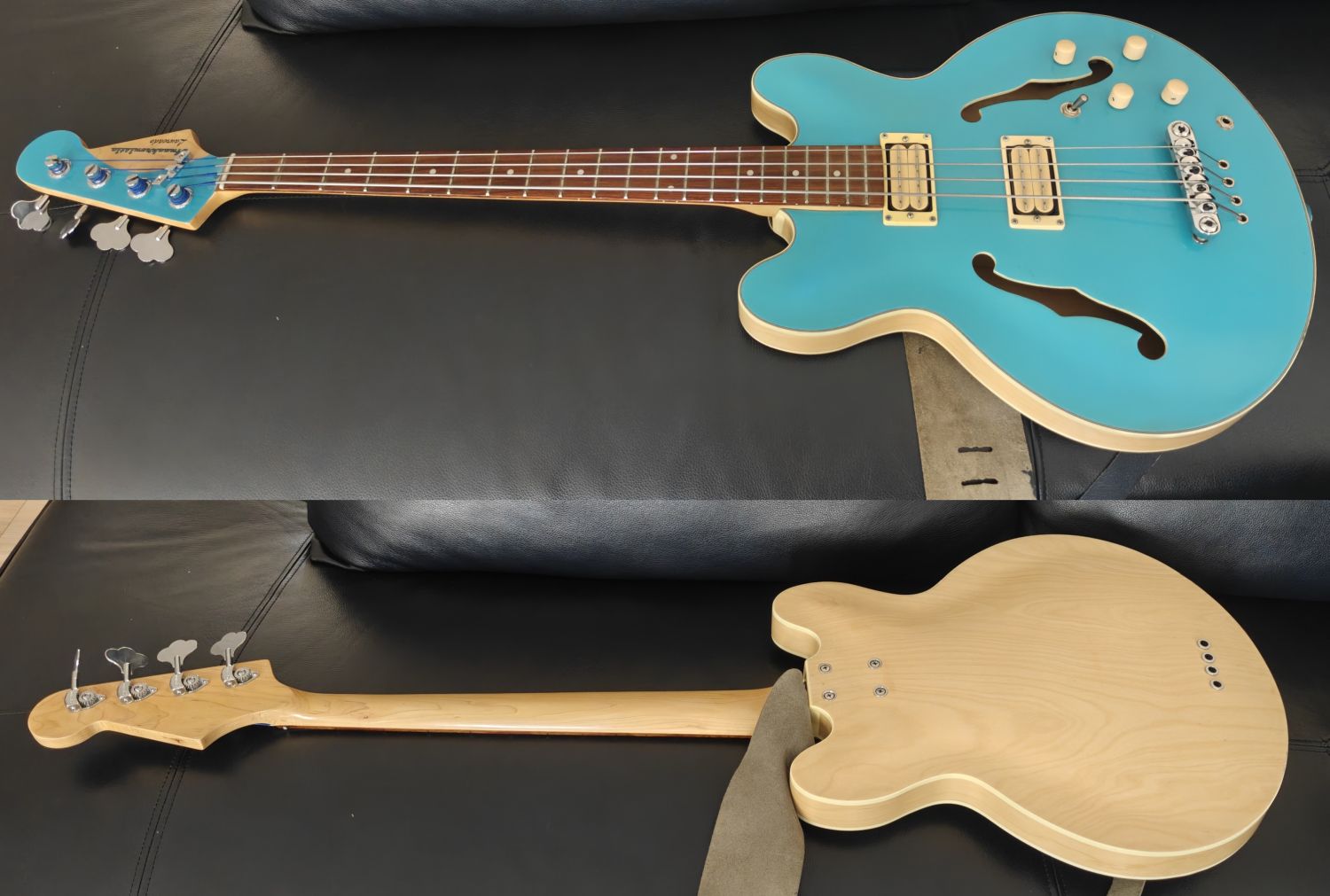 Both of my ES style basses ended up with solid colored tops, but I decided to do the back and sides natural. Not unhappy with the way it turned out: