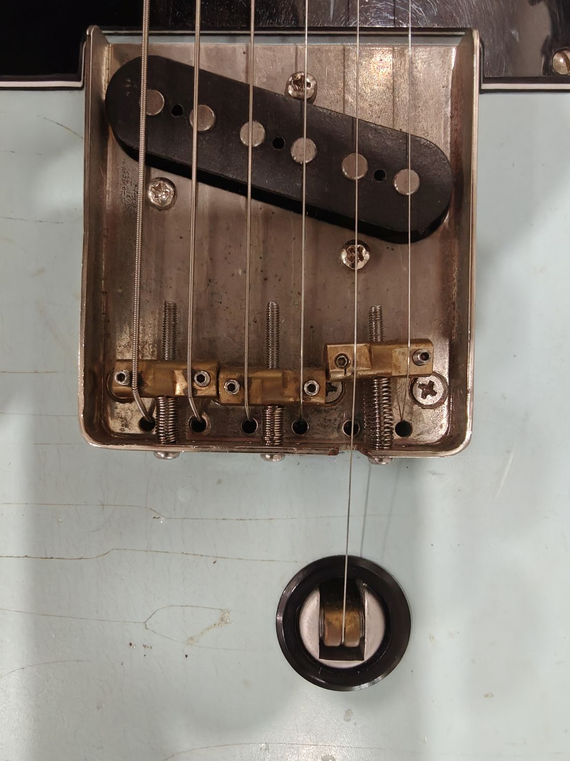 I had heard about these, but never seen one IRL. But I was talking about the Tele I am building with a friend who is a Tele afficionado, who showed me one of his. Unfortunately, when the bender was installed is was not quite properly aligned. It was installed on a Tele with compensated barrel saddle, and using the bender made the string move "to the north" on the saddle, until it got to the height adjustment grub screw.