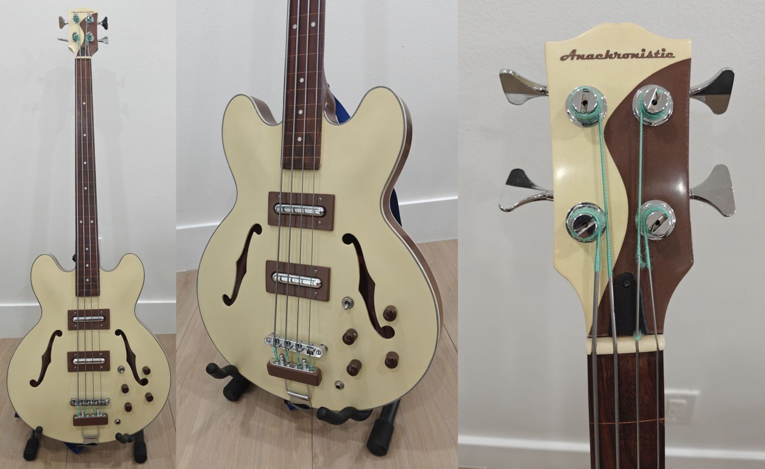 I can't get close to Gavin's finish and Jim's is great too. Mine is probably more interesting for the mods, the most important of which was making it fretless. Added alnico lipstick tube pickups and Danelectro wiring harness, hipshot ultralight tuners, two point bridge, custom flying tailpiece, custom pickup rings...