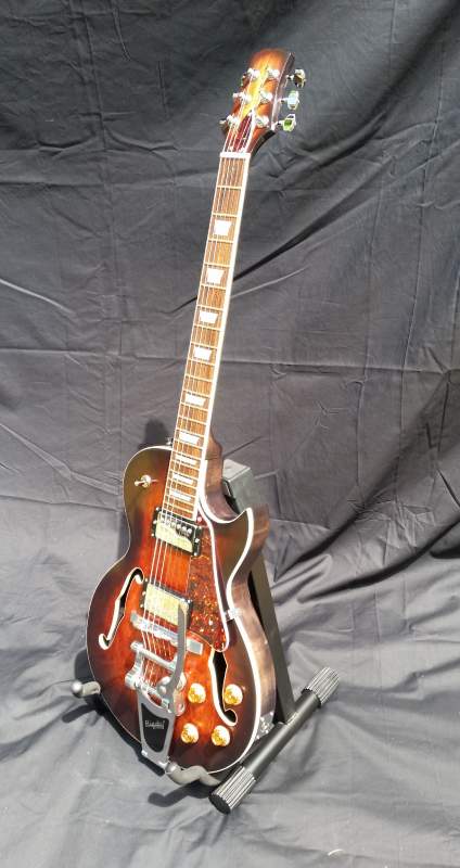 Assembled and set up with roller bridge and Bigsby B70 tailpiece.
