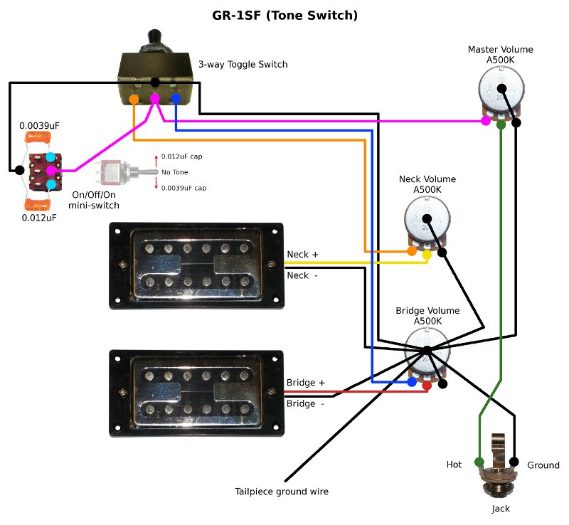 Thanks WierdBits great diagrams, made wiring my Grs-1sf a lot easier! I used the last diagram and it's working great, I love being able to turn one pickup all the way off so I can use the toggle as a kill switch. Plus the guitar looks cleaner with a few less buttons :cool: