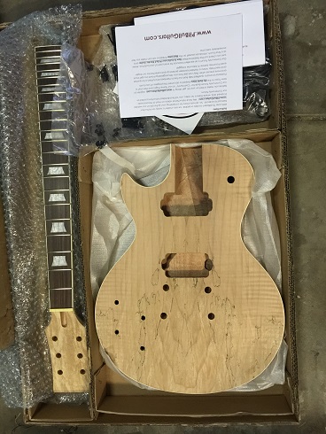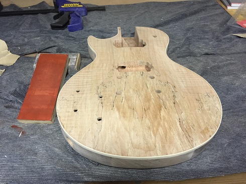 So Adam sent me this Les Paul with Spalted Maple top. I was initially going to paint the whole thing white but then I noticed the pattern on the maple had a fire like pattern.