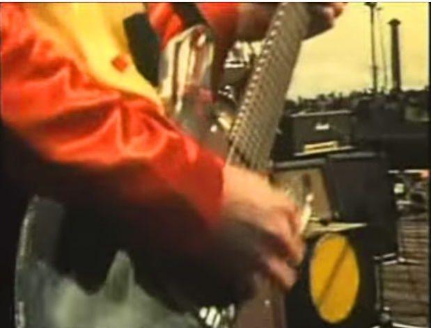 It was Ted Mulry Gang's "Jump in My Car". The axe was Les Hall's (I think). The body was clear perspex.