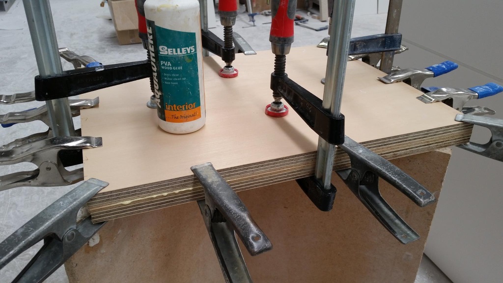 2 pieces of 18mm Marine ply laminated together (one flipped to counteract any bow)