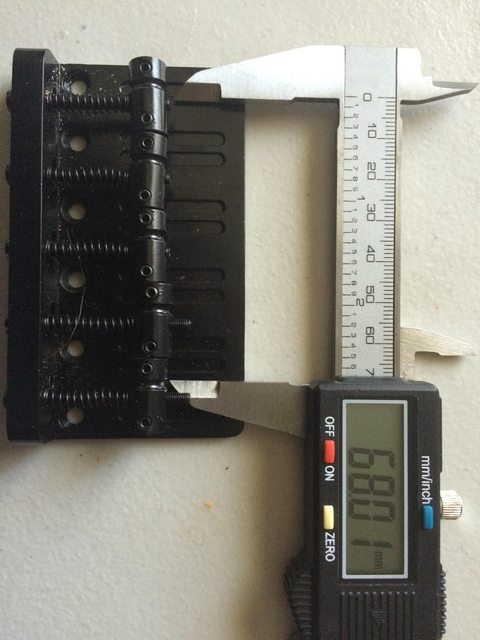 Measured up as 68 mm total spacing with 17mm string width. (68/4 = 17 so that agrees at least).