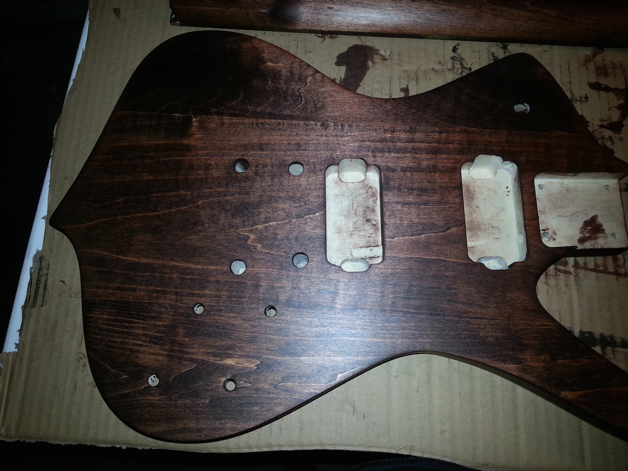 I also decided to apply it as thick as I could without leaving puddles or runs as this got me the colour I wanted. 2 hours after I applied the stain, I went to wipe off excess and there wasn't much that was wet. Wiped down neck and body. It is tacky but not wet. Will let it totally dry for a few days to ensure it's dry, but I am happy with the colour.Attachment 6056Attachment 6057