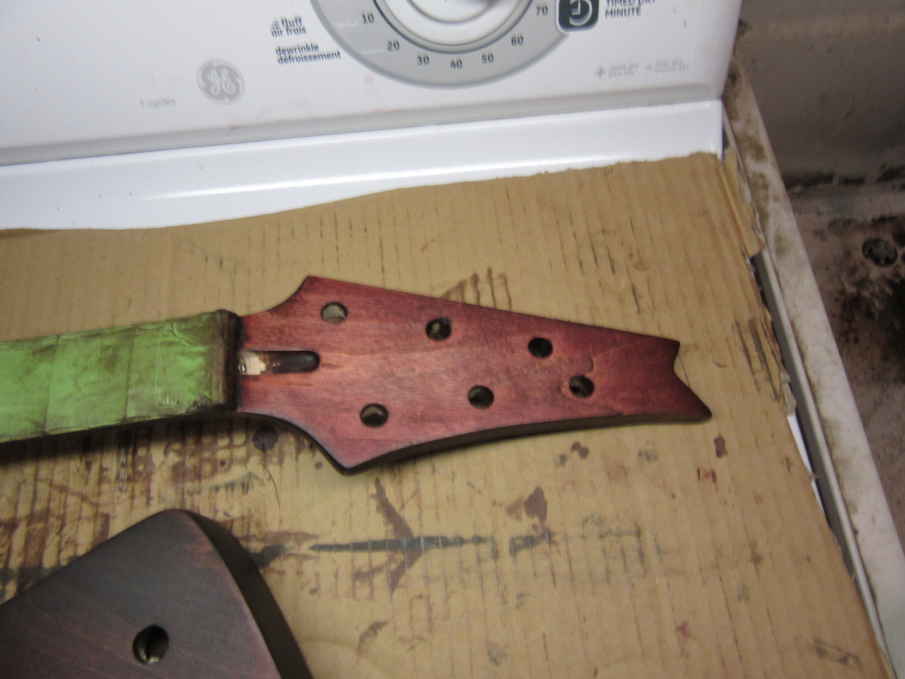 I'm hoping to make kind of a sunburst pattern using ebony to darken the grain. Red oak as the base coat of guitar and neck and a Darker Black Cherry colour for the middle of the top of the body.