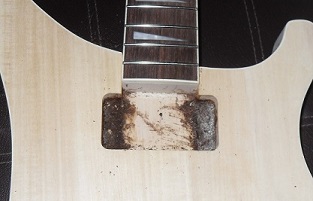The neck pickup with that putty make sure the neck pickup fits, you may have to drill out a section for the mounting screws
