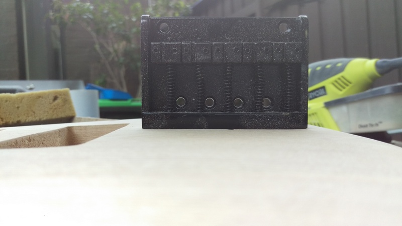 With that done, I got the palm sander out with 80grit paper and I flattened the part for the bridge. It now looks flat and the bridge doesn't rock. Photos with the old bridge used as a test:
