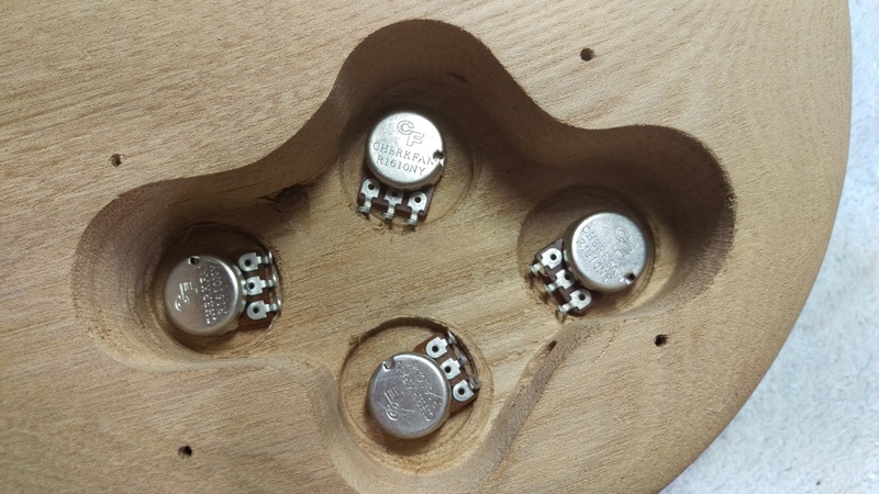 Then I worked on getting the pots deeper in the cavity so I can screw the bolt on the other side.