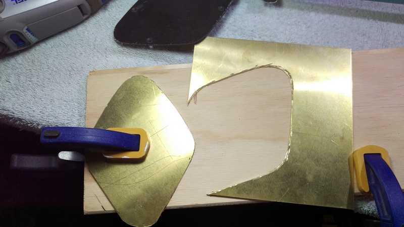 I found online a sheet of brass, 1.6mm thick and I thought that would be perfect to make a 'gold' cover panel.