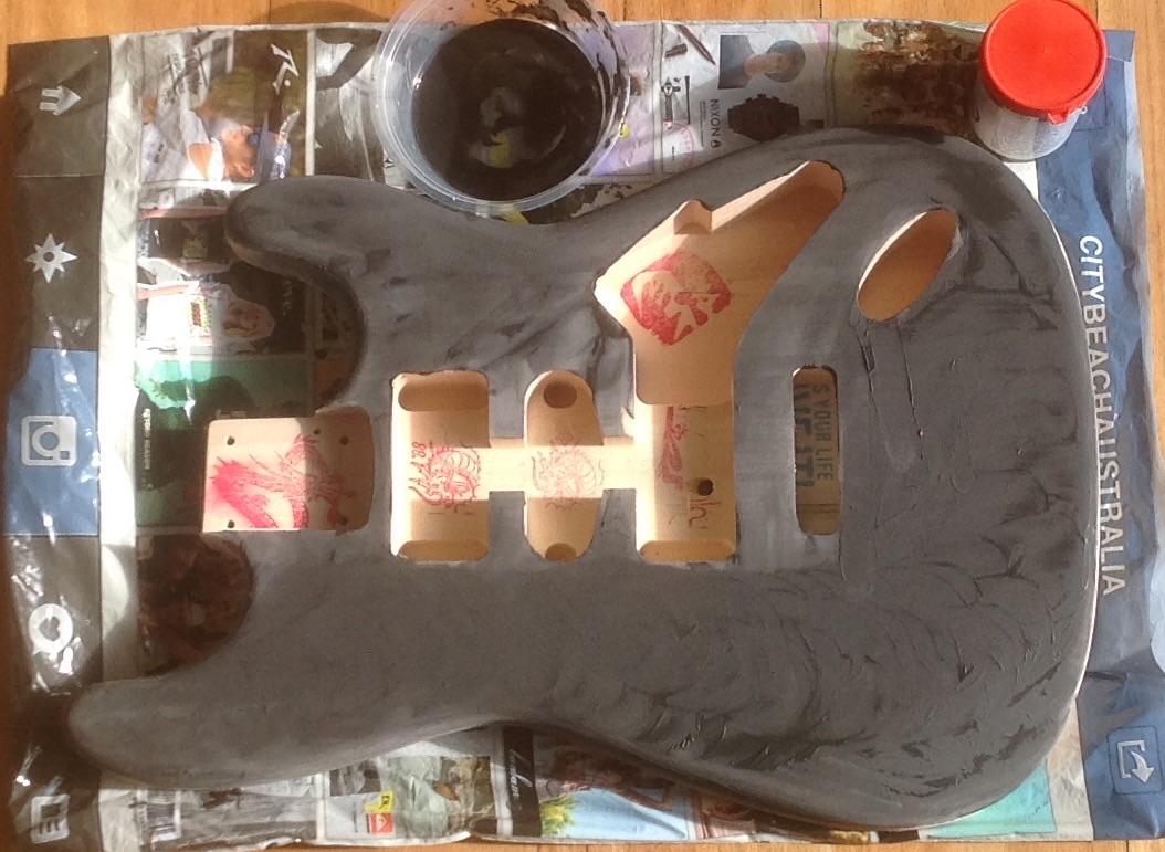 My dad took me hiking in Japan a few years back and we got these cool hand carved dragon stamps. I've put them in the holes in the JB and thought I'd just keep it up. Thanks for the support. I've 5 guitars a banjo. I'm going to make a ukulele after this one.