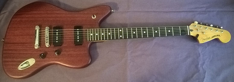 This is my Modern Player Jaguar. Made in China. Can't stay in tune and the low E string falls off the edge of the fretboard. Still, it's my favourite guitar. The stock pickups sound so good I've been hesitant to fix what isn't broken. So this build will be my test bed for a pair of p90 upgrades.