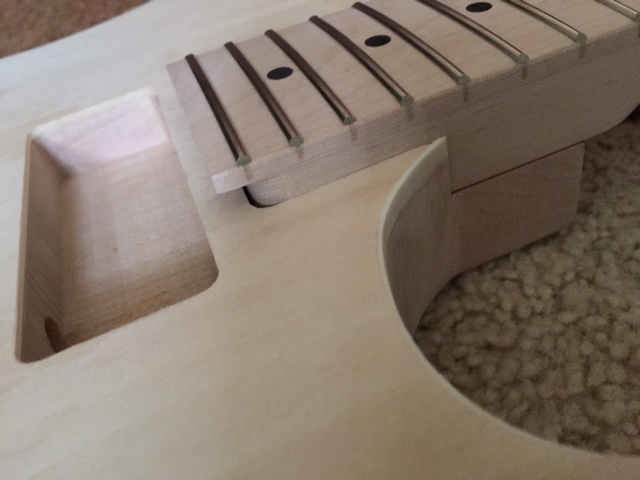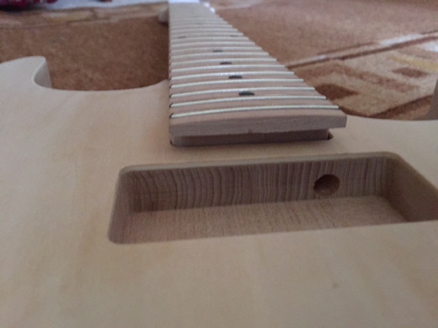 Just thought I'd attach a full view of the entire guitar as the neck angle looks fine once i make the neck joint fit and the other photo, which I didn't notice there is a hole at the front of the pickup cavity