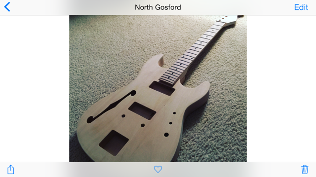 Thanks guys, its actuallly a strat type with f hole, its a snug fit now so if i gradually sand her down sthe fretboard should be flush. No scratch plate i wanted a pure timber look guitar different to my les ,paul
