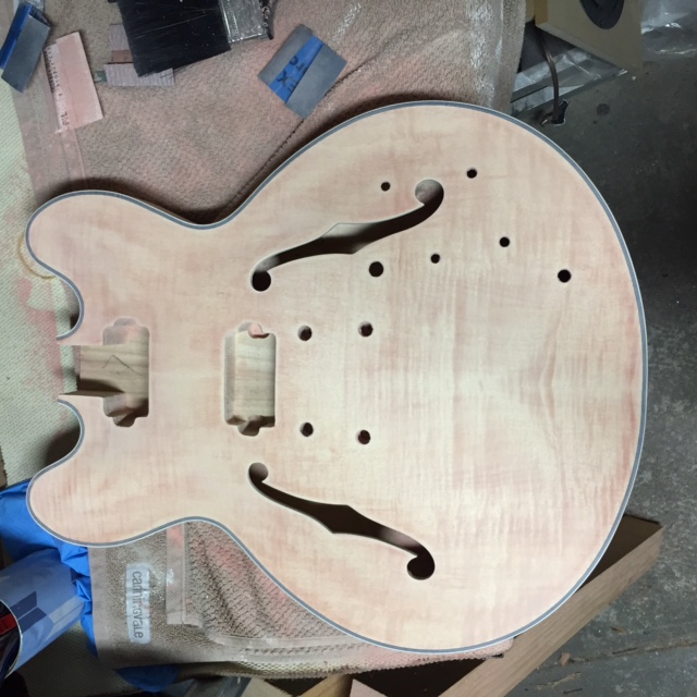 1. Grain fill. I wanted to try out grain filling on this build because I didn't do it on the ESB4 and even though I'm really happy with the ESB4 I kinda wished I'd grain filled it. Anyway I used mahogany Timbermate so hoped to get some nice reddish grain popping. Here's the sanded body: