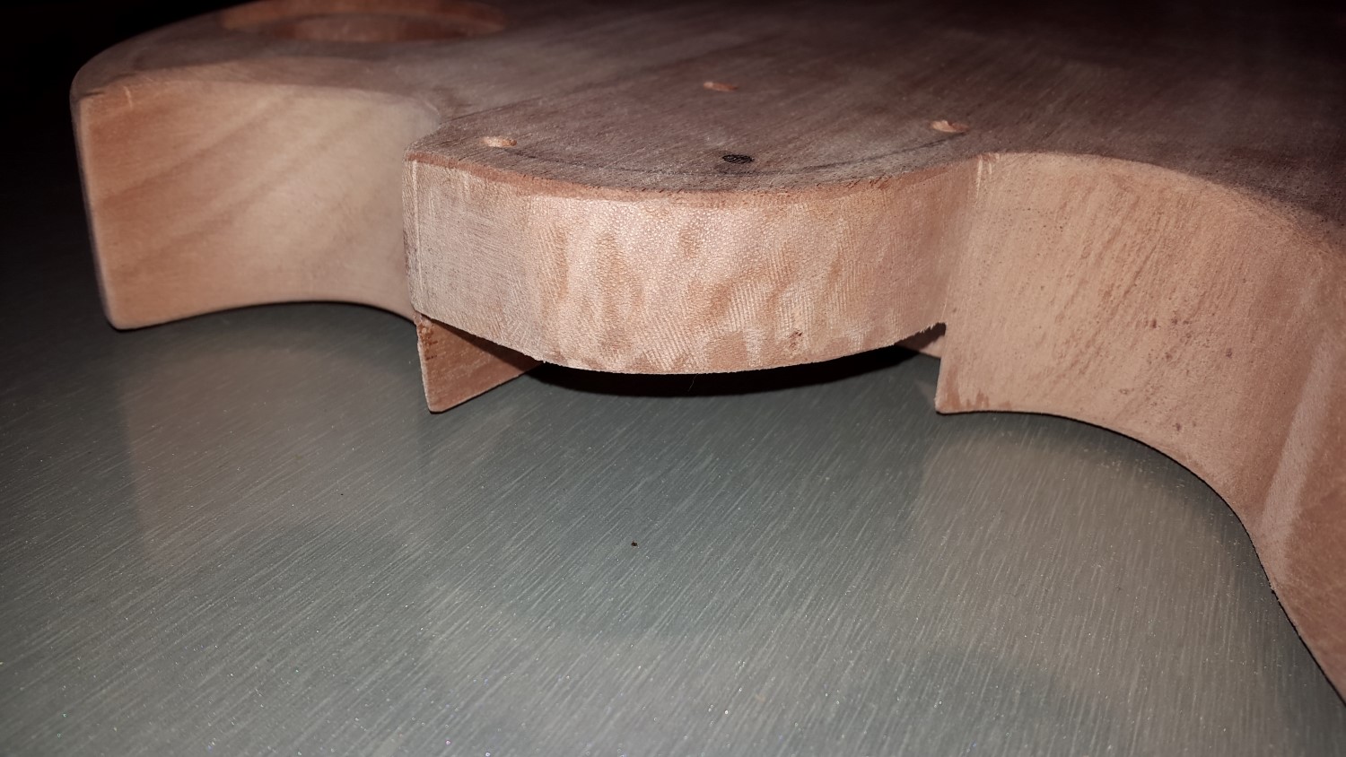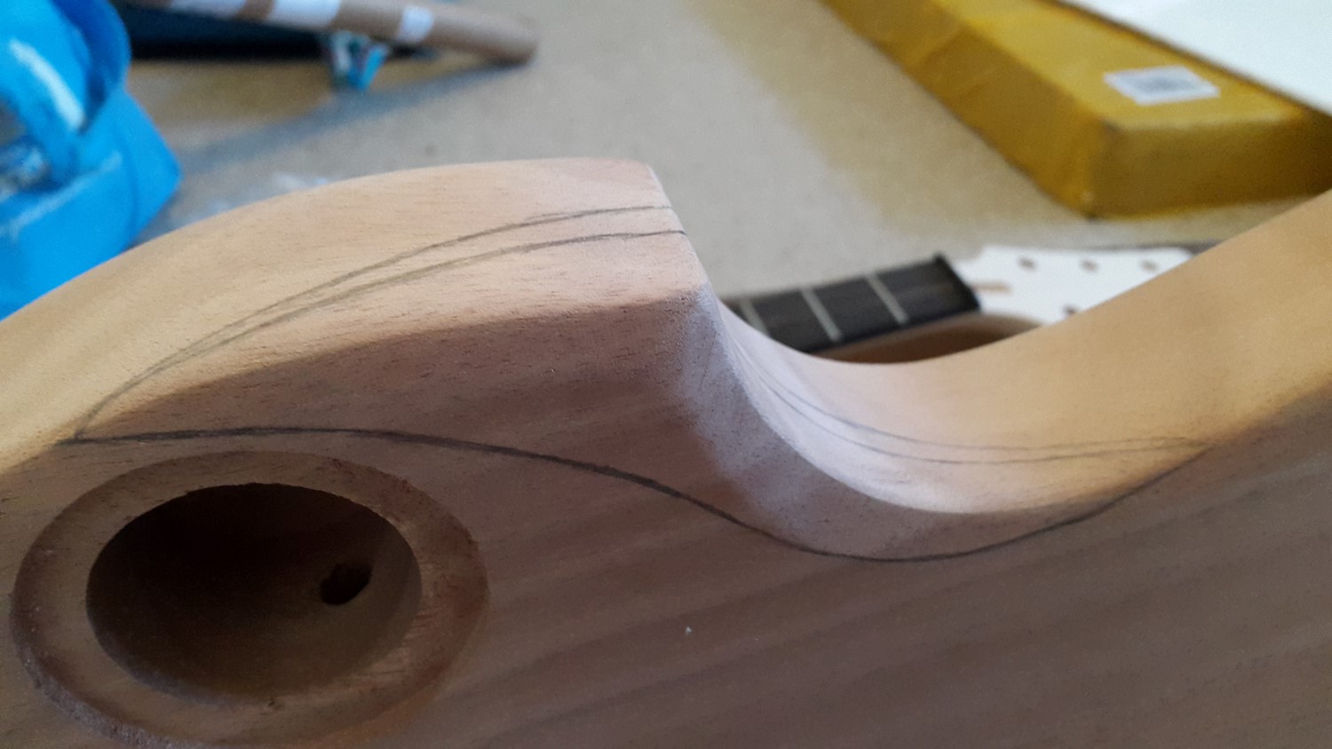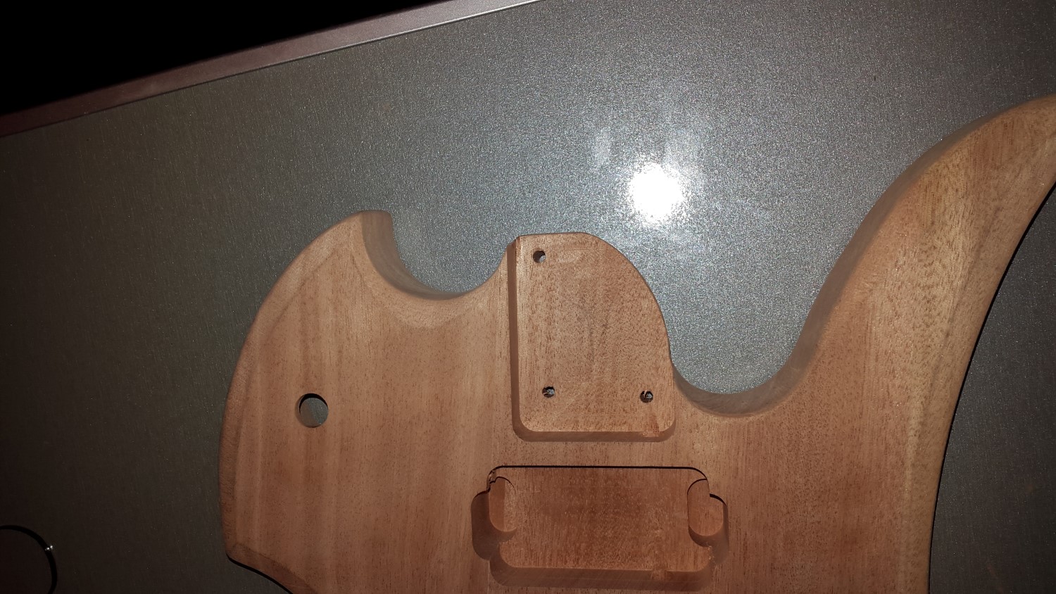 Now for my planned modifications: Carving the heel joint to help out the upper fret access, shaving away the back of the top horn to make it a little more comfy and less stabby, and a non-standard-for-MBs/LPs wiring scheme (1V, 2T, with Push-Pulls, I originally planned for individual coil taps, but I might make it a Master tap, and either Master Phase or Series/Parallel).