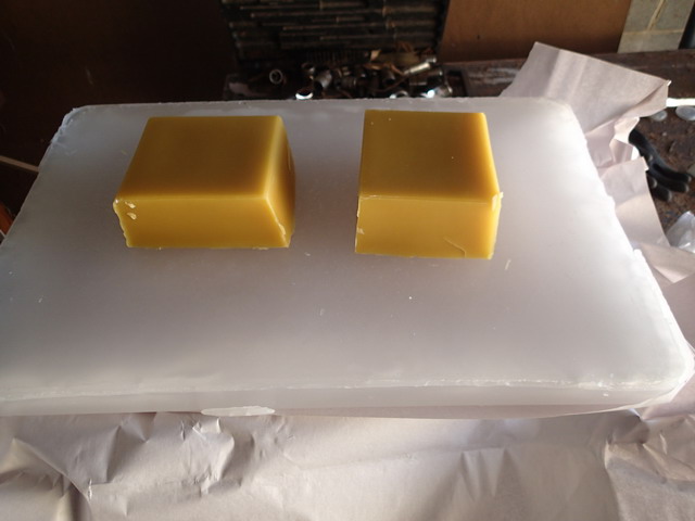 I use 80% paraffin and 20% pure bees wax, some go for straight paraffin and other variables, remembering straight paraffin can ignite easily from it vapour, dont use stove tops especially gas for melting wax and use some sort of double boiler method. Wear eye protection, hot wax will burn your eyes and skin.