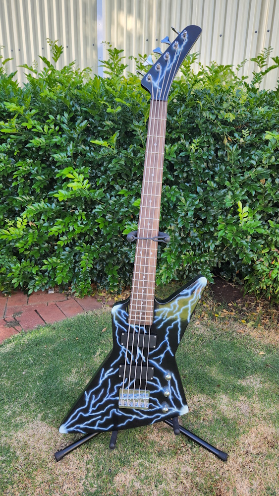 Finally finished my Explorer Bass Build. Took sometime getting in the parts for my modifications and getting the action right with the extra height on the bridge, but got there with the help of shims ! Really pleased with the result !