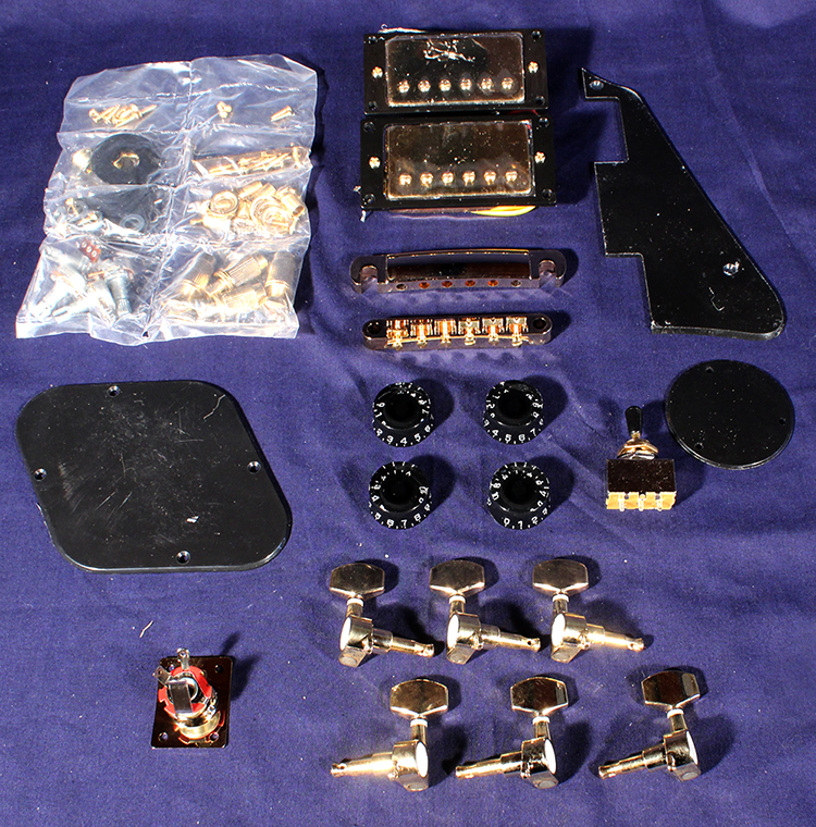 I'm planning on building my first guitar. What I want to build is an LP in the style of Zakk Wylde's Bullseye custom model. Therefore I would like to know exactly what I get if I choose gold hardware when I order the LP-1 kit.