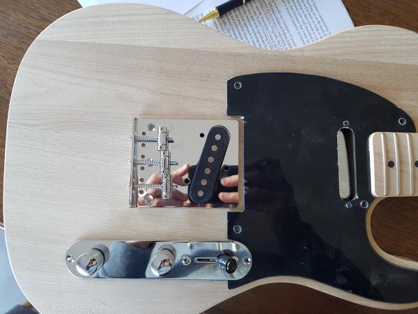 Hi Ben, next step do a mock build. Put both E tuners on. Put the bridge pickup on the bridge plate, there will be 3 springs that go in between the plate and the pickup mounts. The screws should be in the same parts bag section as the springs.
