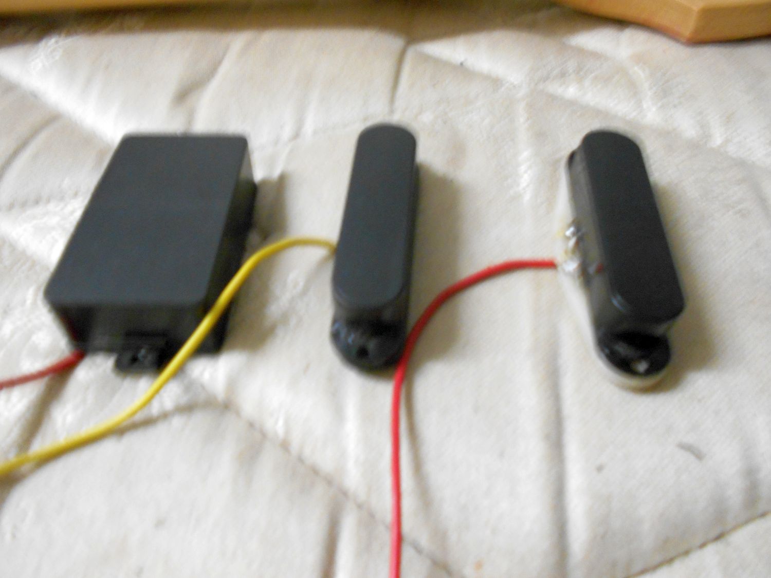 Thought I would start a new thread about a Custom Superstrat build project I will be starting this year, about last month I got Adam to order in a Strat body that was routed to accept a Floyd Rose Double-Locking Trem system, it arrived in the post today and I picked it up from the Winnellie Post Office about an hour ago, the Trem System I am planning on using is a Chrome Schaller Lockmeister, I am also planning on finishing the body in a solid Metallic Blue finish, it is going to have a white pearloid scratchplate, a 5-way pickup switch, the usual Strat tone and volume controls, and the pickups are going to be the ones I got with the Headless Guitar kit I bought online a few years ago, they look a bit like EMGs but are High Impedance passive types, there's a Bridge Humbucker, a Middle Single-Coil, and a Neck Single-Coil, the neck I'm going to be using is a 22-Fret Mighty Mite with a Rosewood Fretboard and a traditional Strat Headstock.