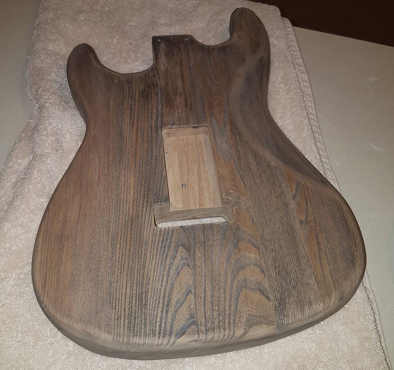 I've since changed my mind a thousand times. I really like the ash grain, so I've bought some ebony timbermate and ill grain fill with that to really bring it out. Once i see how that looks, ill most likely dye it deep red, not quite burgundy and finish with a heavy clear.