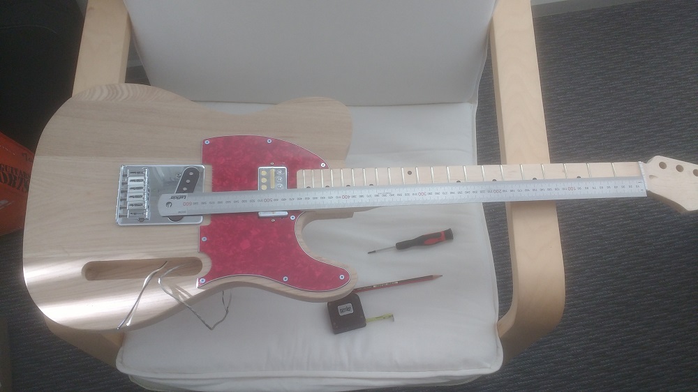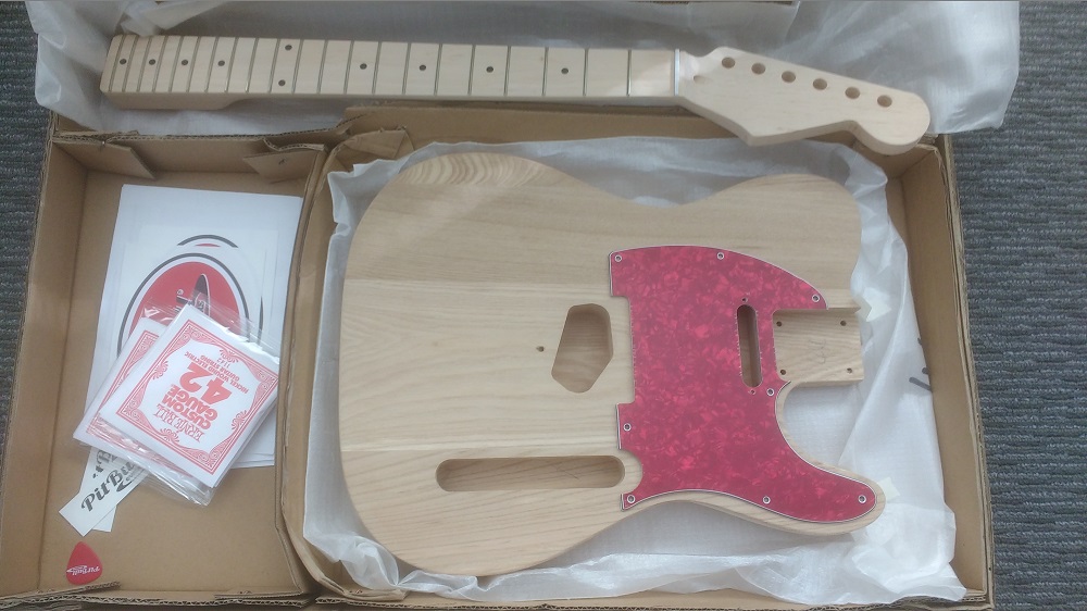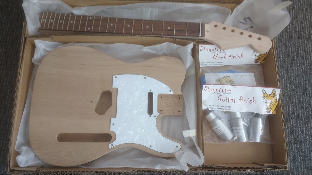 I thought that I would start to get my ideas for these builds up to initiate some early feedback. I have bought two kits, with the intention of building two complementary fraternal-twin guitars. One is a standard TLA-1 (maple fretboard), the other a TLA-1R (rosewood fretboard), both being solid ash bodies. The intention is to finish them in the same Dingotone Black Stump stain/oil, use the same hardware (bridge, machine heads, control plate, etc), varying only a few aesthetics, choice of pickups and the switching/controls configuration.