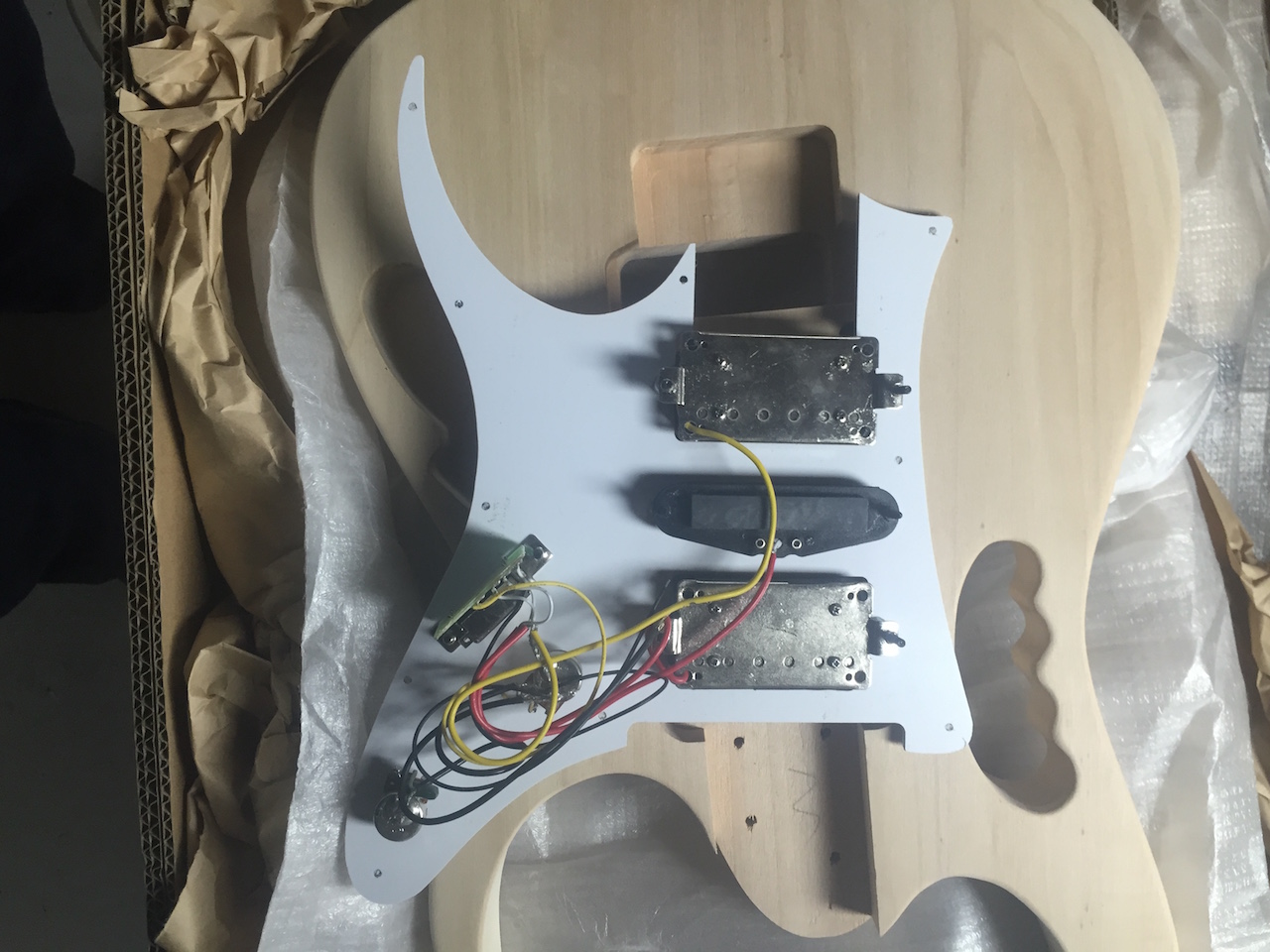 HI fellas thinking of my next build....Yeah still got one going but bored waiting for it to cure...Question I want to get the SV 1 and will give it an 80.s swirl!!!...Question is, I know from reseach the original 'Monkey Grip' Jem pickups were wired to a 5 way switch BUT the way it was wired was, and for those who dont know, was this way..