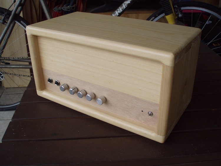 First up is a re-housing of an old Squier Champ 15R amp. I just felt like doing something a bit different so made a new speaker cab and head housing from some nice pine, finished with beeswax.