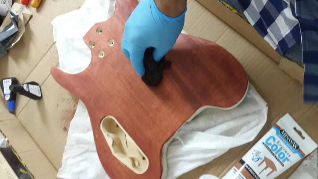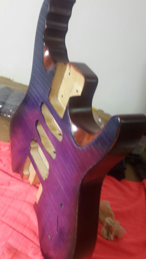 Hi Gabriel, welcome to the forum and that looks very nice. Is that a custom order with the flame maple veneer or did you put that on ? Colours look really cool, look forward to see it strung up !
