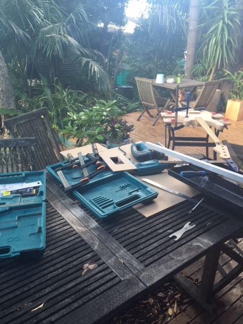 Yesterday I got cracking again - it was a building kinda day. First step was to take all the tools out on to the deck and to get the neck on.