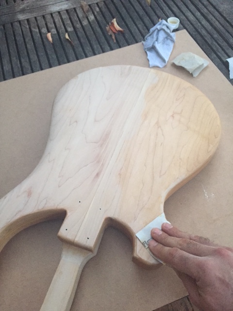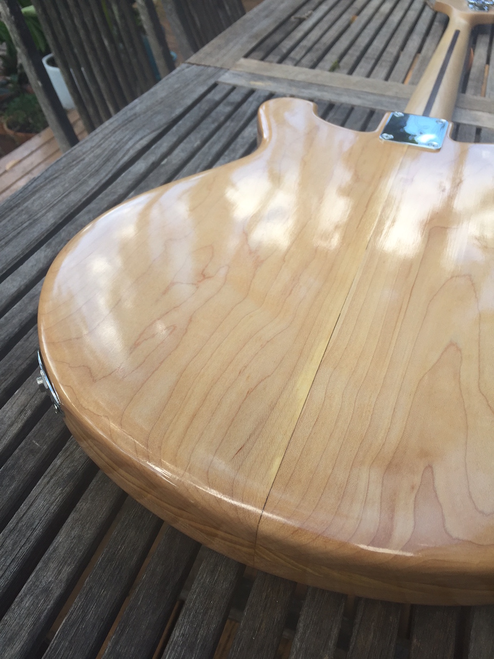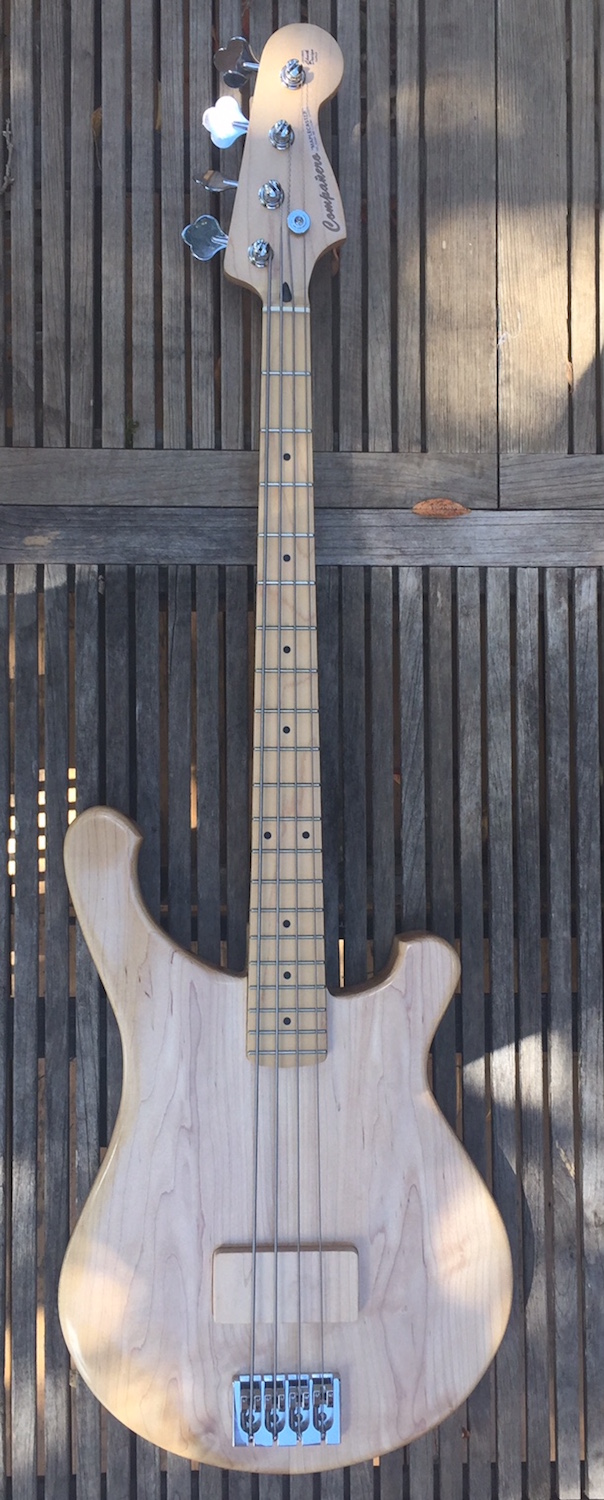 ... but then I made a maple cover for it and decided I wanted to do away with knobs entirely and wire the pickup directly to the jack (I may need to experiment with capacitors to avoid it being too hot but this will be a simple one indeed!). I also have a Mighty Mite maple J-bass neck for it. And that’s where I kinda stopped.