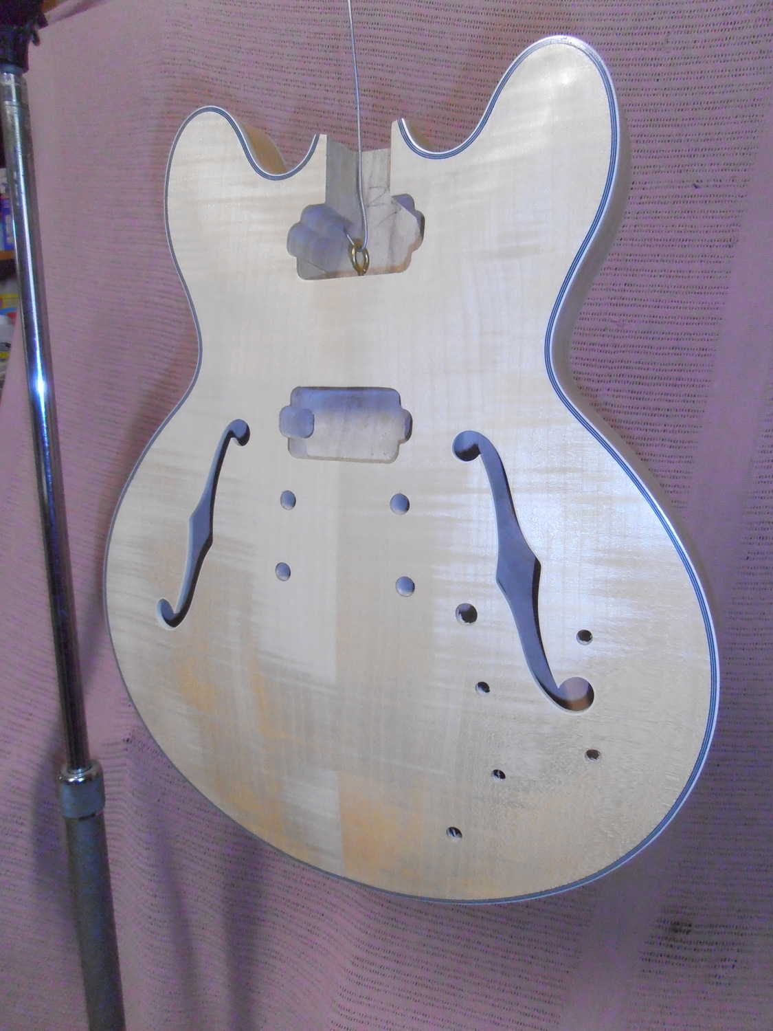 After sanding to 1200 grit I applied two coats of Dingotone clear. Unfortunately the veneer on the front did not take evenly so it looks like it will be a paint job!