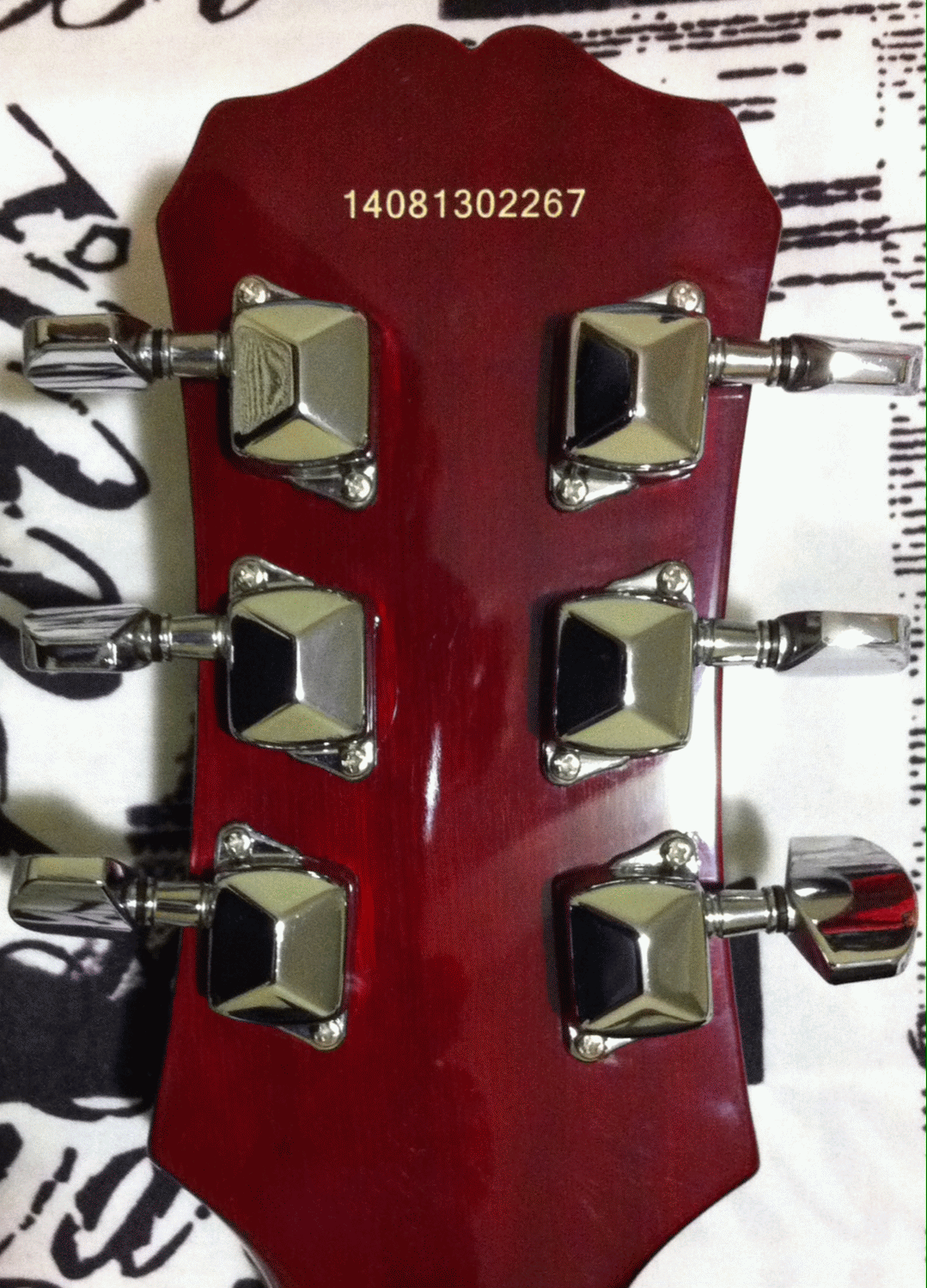 It isn't bad stock, the body is mahogany with a flame maple veneer - tobacco burst, it says the neck is maple but I think its mahogany. It comes with a plastic nut, 2 x Wilkinson Humbuckers and from what i can see most of the wiring and parts come from Korea and/or China.
