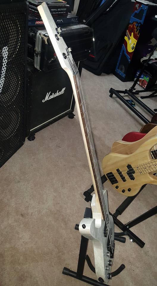 Reversed lefty Iceman...Now a Fireman Bass. Its a pearl white finish with a marble effect and a coating of clear pearl glitter nail polish stolen from my Fiancee ! Haha.