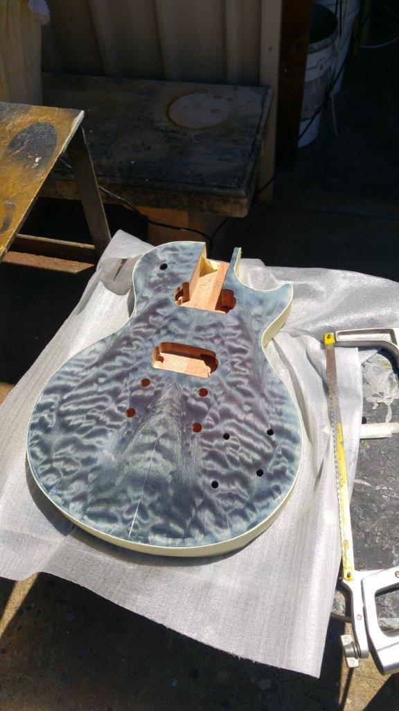 I understand that some inks fade and some don't. I have no idea which ones do fade, but you can get light-fast india ink from an art supply place for less than $10 a pot. The pots are tiny, but there's probably enough in there to pop grain on 2 or even 3 guitars. You want to dilute it to 1 water in 3 ink or even further. 50/50 seemed too dilute for me but I was trying for a colour, not a grain pop.