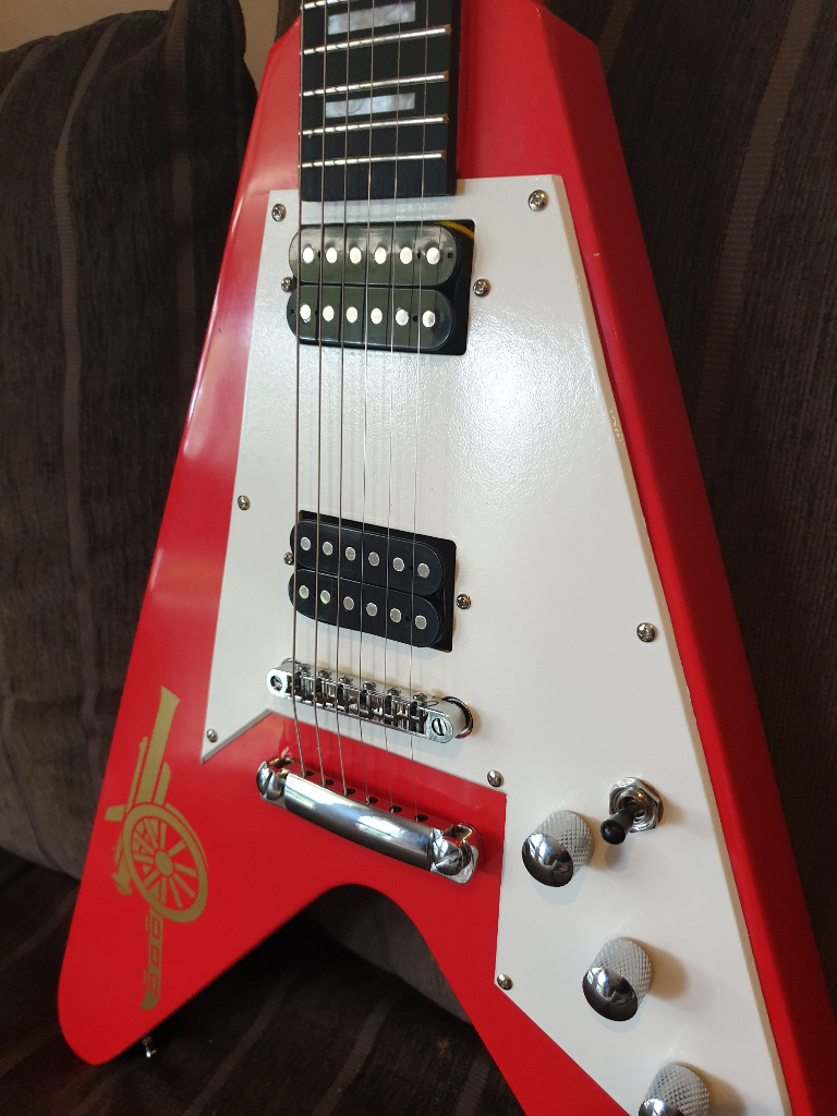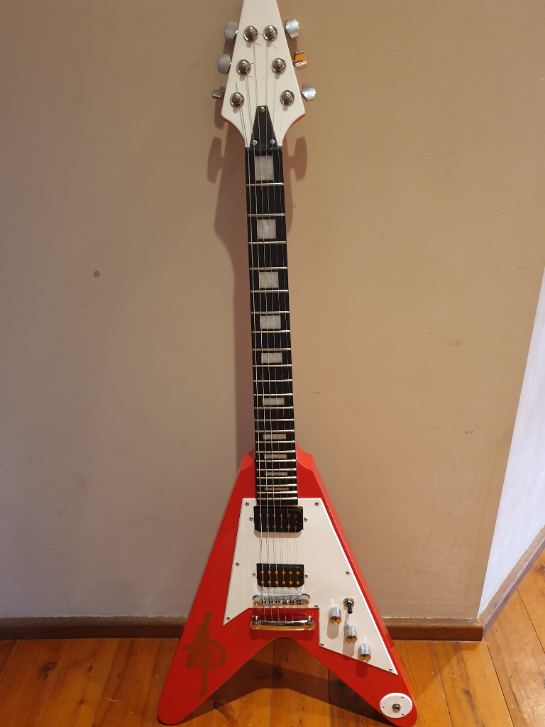 So this is my first ever attempt at a guitar kit. I am 97% useless with tools etc... Anyhoo - Specs: FV-1 kit, Seymour Duncan Invaders, CTS pots, Orange drop caps, Grover locking tuners, Gotoh bridge, epiphone output jack. I'm waiting on a switchcraft 3-way switch and a new truss rod cover to arrive.