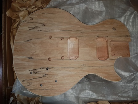 Mine was always going to be a cliche stripped down LP done in solid black so my muddy looking flamed top is no tearjerker. The kit was a custom order that was supposed to have been solid mahogany, no veneer, but factory made a boo boo. I'll post some pics later in the build thread so you can see what I mean.