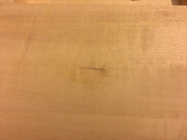 As for the dent, unfortunately they shop patched up the dent with some glue and a bit of dust so the old iron and dam cloth is not going to work. I was hoping that it was just dust so I could try that or even some aquadhere and sanding dust but to get it out was going to cause more damage.