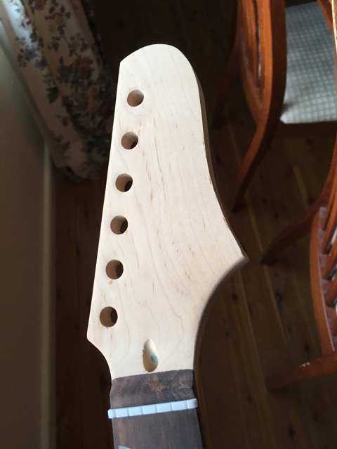 After much messing around, today I starting putting things together. It took a lot longer to do the measurements and make sure everything was centred and stuff. Also it seems this kit's bridge is a too far behind. It might be ok, but I get the feeling I will have to move the saddles as close to the neck as they can go.