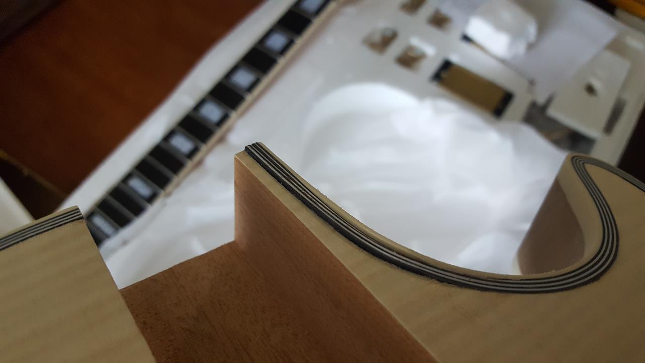 I was excited when I came across a LP custom kit that had the full on 7 ply body binding and 5 ply headstock binding with legally questionable shaping.