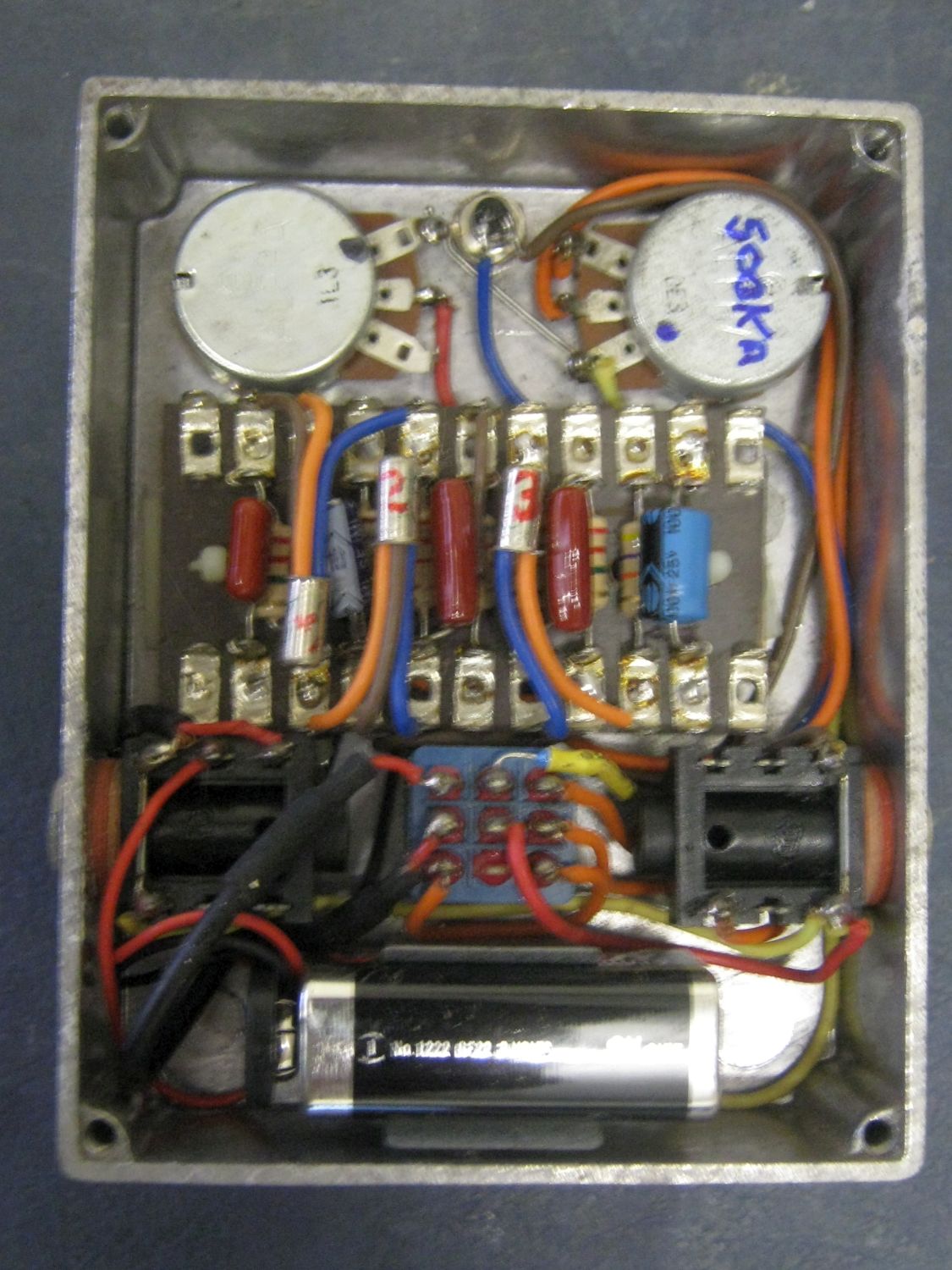 I just found my DIY Tonebender Mk I Fuzz pedal, and thought I'd start this thread as a way to re-visit it, and would you believe it, the pedal still works, I tried it out with my Gold Strat and it sounded brutal, heaps of sustain at full attack settings, anyway here's a couple of new pics I took of it: