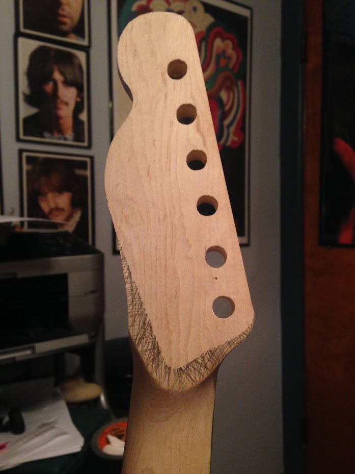 Rear of the headstock pre shaping, penciled in areas were removed and was squared off