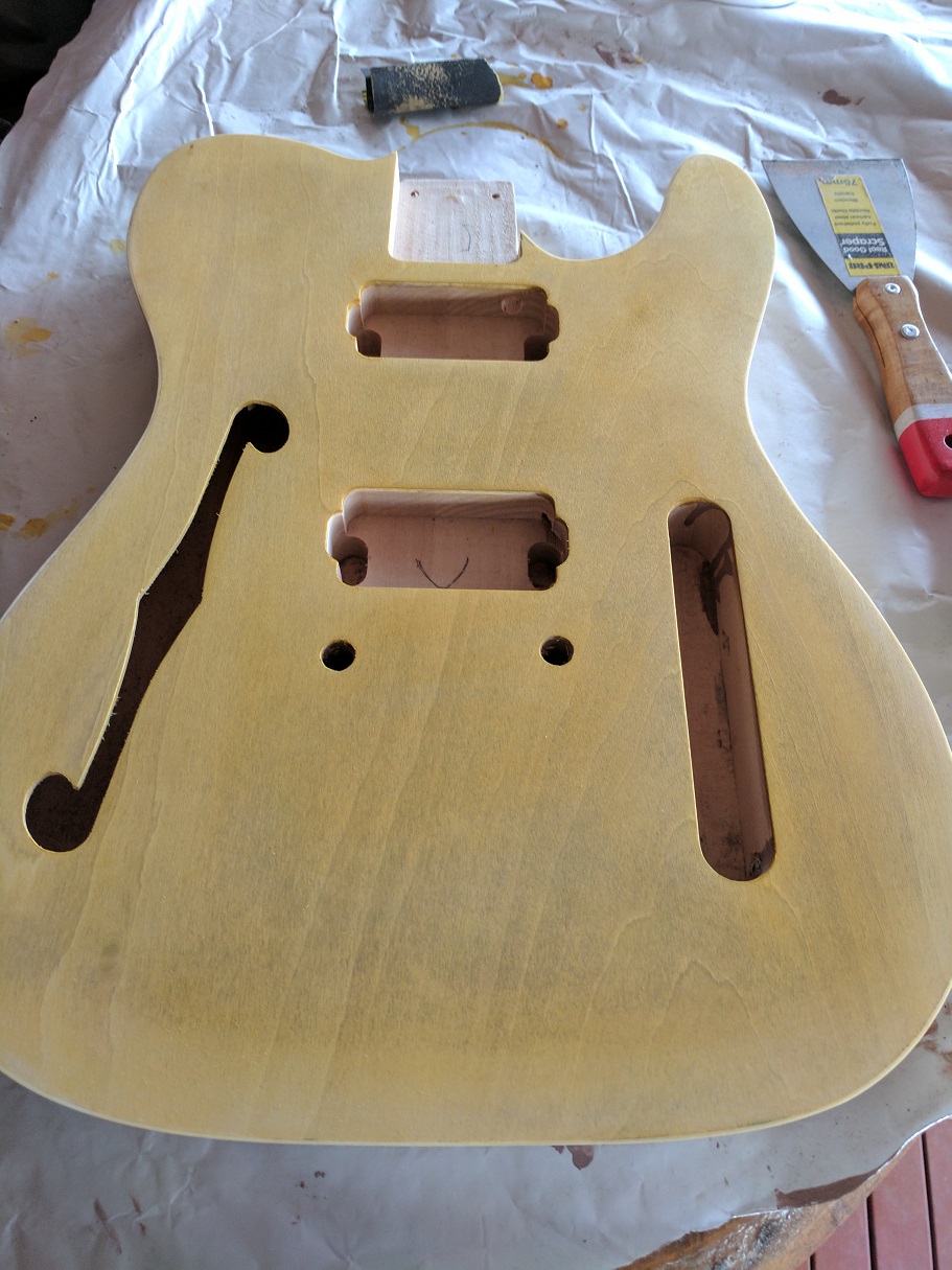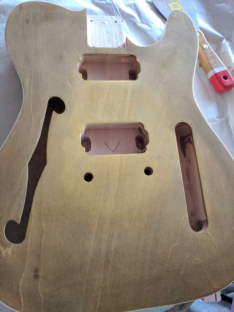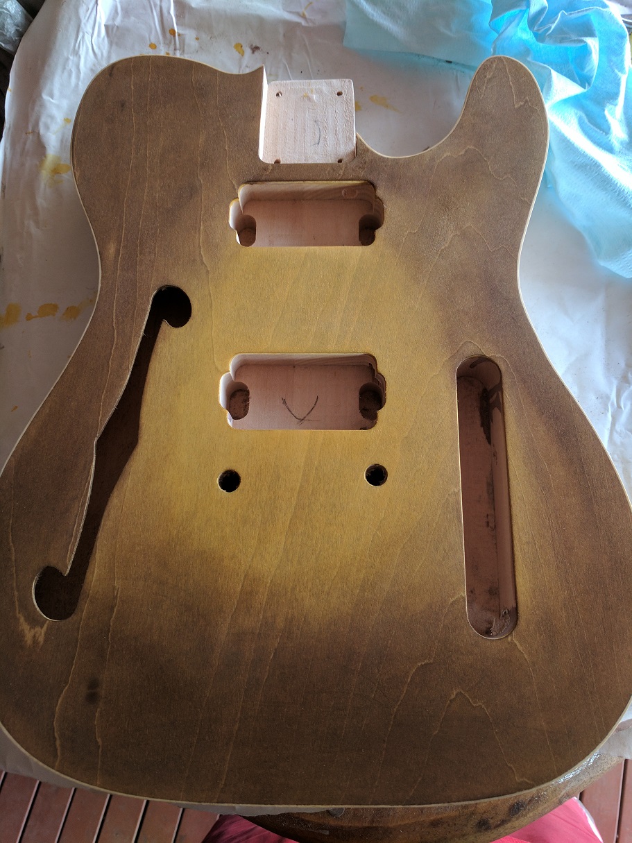 I've also bought some amber and brown wood stain to try and get a Honey burst finish, along with Tru Oil to finish