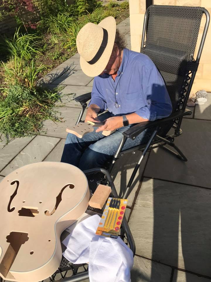 Spent a nice sunny day sanding and taking burrs off of frets.