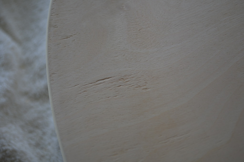 There are quite a few places on the body where bits of wood have come out of the grain. Not from sanding, it was like this when I received it. Typical of plywood. Here's a couple of shots: