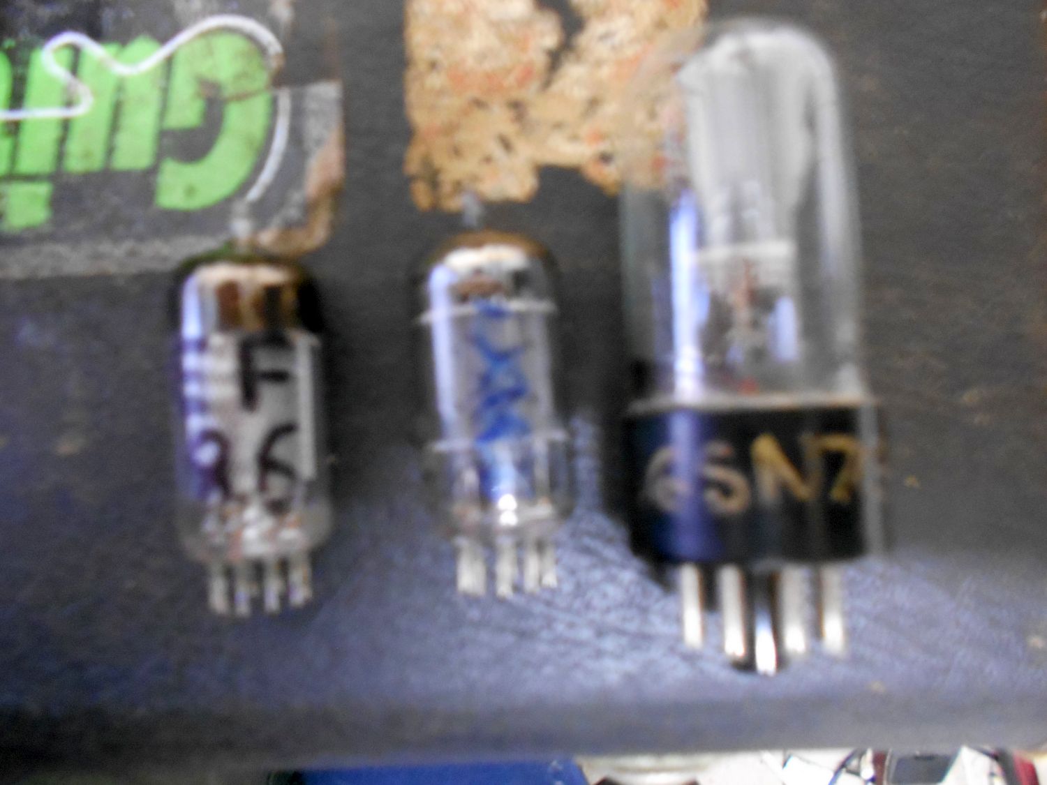 I don't actually have any of those valves, but I do have some substitutes that I know should work, for the EF184 I'm going to substitute an EF86 (functionally the same as an EF184), for the 12SL7 I'm going to substitute a 12AX7 (same specs as a 12SL7 but in a 9-pin base format), and finally for the 12SN7 I'm going to substitute a 6SN7 (same as a 12SN7 except for a 6.3V Heater).